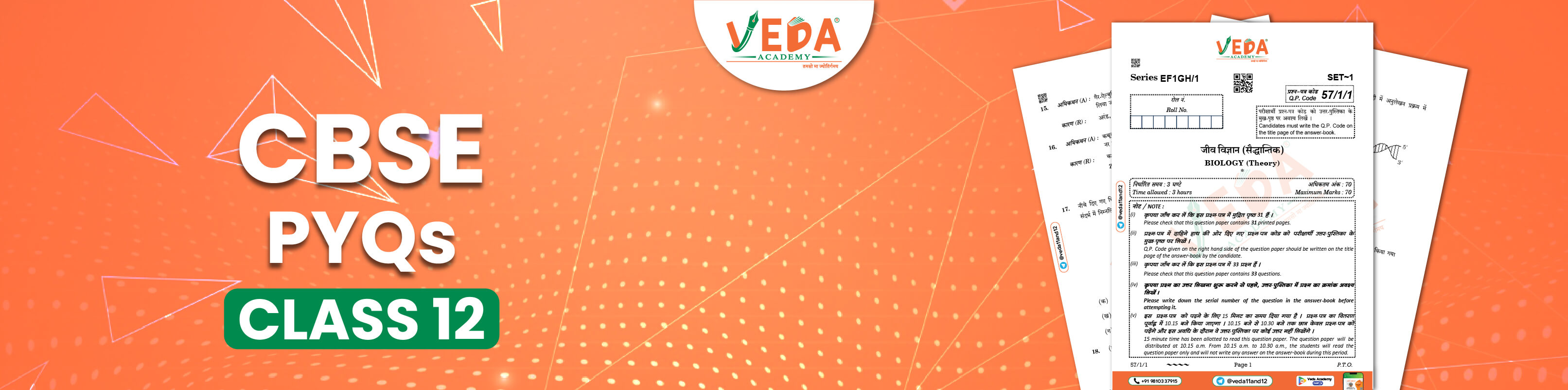Are you looking for CBSE Class 12 NCERT Previous Year Question Papers for exam preparation? At Veda Academy, we make exam preparation simple with clear, step-by-step explanations for every chapter. By practising our PYQs, students can easily understand difficult topics, revise quickly, and improve their question-solving skills to score higher marks in exams. They also become familiar with the exam pattern and the concepts that frequently appear. The study material is prepared by subject teachers with extensive knowledge of their respective subjects. Practising the Class 12 NCERT Previous Year Question papers is important, as it gives students aiming to score well on their first attempt a real-world experience and helps them improve their preparation. The students are under a lot of pressure to score well on their boards; the best way to test themselves is by practising the NCERT Previous Year Question Papers for Class 12, which help in preparing for the Board Exam: The 6 advantages of solving and practising from the Class 12 NCERT Previous Year Question papers, some of which are listed below: Easy to understand the exam pattern and marking scheme. Class 12 NCERT Previous Year Question papers help improve a student's Accuracy, Speed, and Confidence before Board Exams. Solving the PYQ papers provides real exam-level practice, and students get a proper experience of the real exam. It helps students with self-assessment and performance analysis, and they can work more on their weaker sections to score well in their Class 12 board exams. The Class 12 previous year question papers are strictly based on official guidelines, so students do not face any hindrance while attempting the exam in real life as well. Veda Academy provides free access to all students, not only the PYQs but also all the study material on their website and mobile application. Every year, thousands of students choose Veda Academy for their CBSE exam preparation. To make learning easier, by providing comprehensive resources, including quality study material, important notes, Class 12 NCERT previous year question papers, and more, to help students score well in their exams. Our experienced teachers prepare NCERT Solutions for Class 12 for all subjects, following the latest CBSE syllabus. Through regular weekly tests and focused practice with previous year questions, we help students build a strong academic foundation and improve their exam performance. Class 12 NCERT Previous Year Question Papers are useful in multiple ways, and students can easily access the previous year question papers on the Veda Academy Website & mobile application for free. Not only the PYQs, but there's more to it. Everything a student needs for effective board preparation, including Important Questions, mock tests, sample papers, and model papers for all subjects, all free. Download Free CBSE Class 12 NCERT Previous Year Question Papers