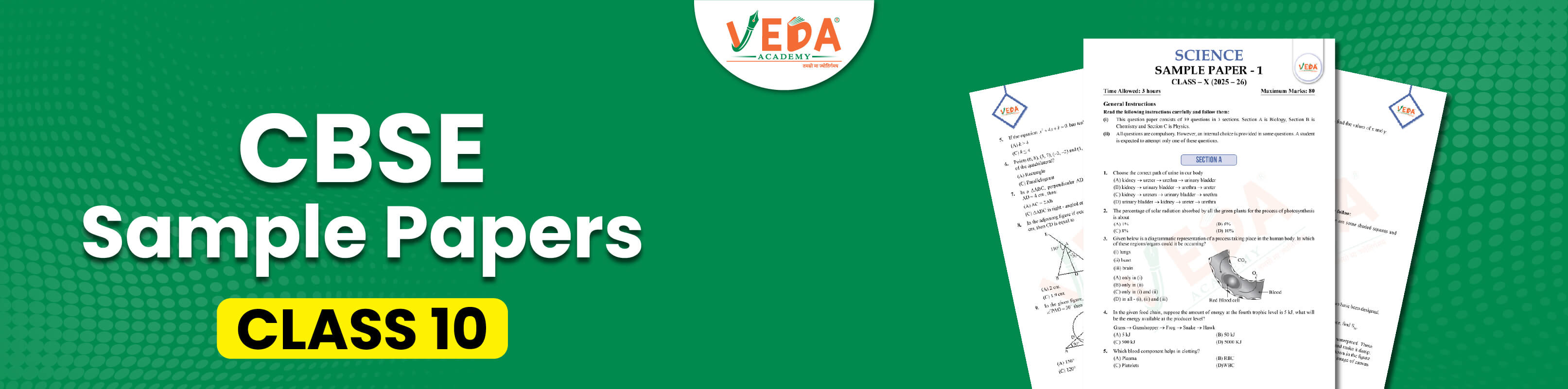 Solving Class 10 NCERT Sample papers in Hindi is important for exam preparation. We make all tough concepts easy to understand while adhering to the updated CBSE exam pattern and syllabus. Practising the Class 10 NCERT Previous Years Question papers in Maths is important, as it gives students aiming to score well on their first attempt a real-world experience and helps them improve their preparation. Download easy-to-access Class 10 NCERT Sample papers in science and prepare well for exams. Students can download these Class 10 sample papers without any hindrance. By solving Class 10 NCERT Sample Papers, students gain many benefits, as they get an idea of how the question paper will be structured. So it makes it easy for them to prepare for the Class 10th Board Exams. Below are the CBSE Class 10 Sample Papers for practice: Our NCERT sample papers for class 10 focus on essential exam-oriented concepts, making them a powerful tool for adequate preparation. By presenting the core ideas in a crisp format, Veda Academy helps students understand subjects more deeply and confidently. These practise papers offer a quick way to review entire chapters, especially during last-minute exam revision. Using Veda Academy sample papers regularly ensures that students stay on track and cover all important topics with ease. If you are looking for the best coaching for the CBSE exam, Veda Academy is the perfect option. We provide clear, easy-to-understand study material, expert guidance, and mock tests to help students achieve their best exam scores. Our expert teachers explain every topic in a simple, easy-to-understand way that helps you remember the material. We follow the latest CBSE syllabus and provide students with notes to help them achieve better results The Class 10 NCERT Sample Papers are highly beneficial for students because they are prepared in accordance with the CBSE syllabus. This means the questions asked in the exams are also present in the sample papers, helping students prepare effectively for the CBSE exams. Veda Academy provides the NCERT sample papers for Class 10, which help in improving writing answers, accuracy, time management, and speed of the students, which is an important part of preparing for the exams.Download Free Class 10 NCERT Sample Papers (Hindi)