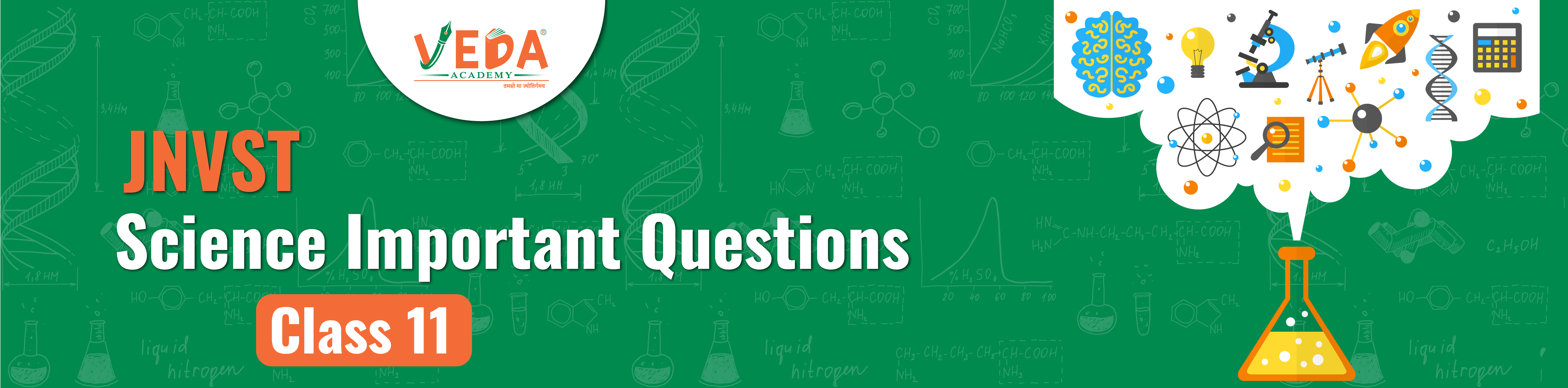 By solving these JNV Class 11 important questions, students can understand the science concept easily. At Veda Academy, we make JNVST exam preparation easy by providing mock tests, model papers, important questions, notes, and previous year question papers. By downloading chapter wise Class 11 Science JNV important questions, students can focus on only important concepts. We provide chapter wise JNV important questions that help students to score well in their exam. You can download Class 11 Science Jawahar Navodaya Vidyalaya notes free of cost. We provide a detailed chapter-wise overview of Navodaya Vidyalaya Class 11 Science to help students understand concepts clearly and prepare better for the exam. Unit I: Chemical Substances – Nature and Behaviour This unit explains the basic ideas of chemical reactions and equations. Students learn how to write and balance chemical equations and understand why balancing is important. It also covers different types of chemical reactions such as combination, decomposition, displacement, double displacement, exothermic, and endothermic reactions, along with the basics of oxidation and reduction. Unit II: The World of Living This unit is based on biology and explains the characteristics of living organisms. It covers important life processes such as nutrition, respiration, transport, and excretion in plants and animals. The unit also explains control and coordination, including plant movements, plant hormones, the nervous system, reflex actions, and animal hormones. Unit III: Natural Phenomena The Natural Phenomena unit introduces Light and Optics. It explains reflection and refraction of light, spherical mirrors and lenses, and how images are formed. This unit also covers mirror and lens formulas, magnification, defects of vision and their correction, the human eye, and the practical uses of mirrors and lenses. Unit IV: Effects of Current (How Things Work) This physics chapter covers electric current and magnetism. It explains topics such as electric current, potential difference, Ohm’s law, resistance, resistivity, and combinations of resistors. It also covers the heating effect of electric current, electric power, and their uses. The chapter includes magnetic effects of current, magnetic fields, Fleming’s Left Hand Rule, solenoids, force on a current-carrying conductor, and the basics of AC and DC. Unit V: Natural Resources and Environment This unit explains the importance of environmental studies. It covers ecosystems, environmental problems, ozone depletion, waste management, and the difference between biodegradable and non-biodegradable substances. The unit also includes important Chemistry topics such as acids, bases, and salts, their properties, the pH scale, and their everyday uses. Class 11 JNV important questions play an important role in your exam preparation. It helps students to stay focused on important and high scoring concepts. These important questions cover frequently asked questions in the JNV Class 11 entrance exam. JNV important questions help students to remember concepts easily. It saves time by avoiding unnecessary or low weightage topics. By regular practicing, students can enhance their speed and accuracy. It helps students to understand the exam pattern and difficulty level. Useful for quick revision before the exam These JNV important questions help students to score well in their Class 11 JNVST exam. If you are searching for a trusted online platform for JNV exam preparation, Veda Academy is the perfect choice. Our goal is to provide high-quality study material that helps students clear the JNV exam in the first attempt. We offer important questions, easy notes, previous year question papers, model papers, and mock tests to make learning simple and effective. If you want to study in JNV schools, join Veda Academy today. Free Download Class 11 Science JNV Important Questions