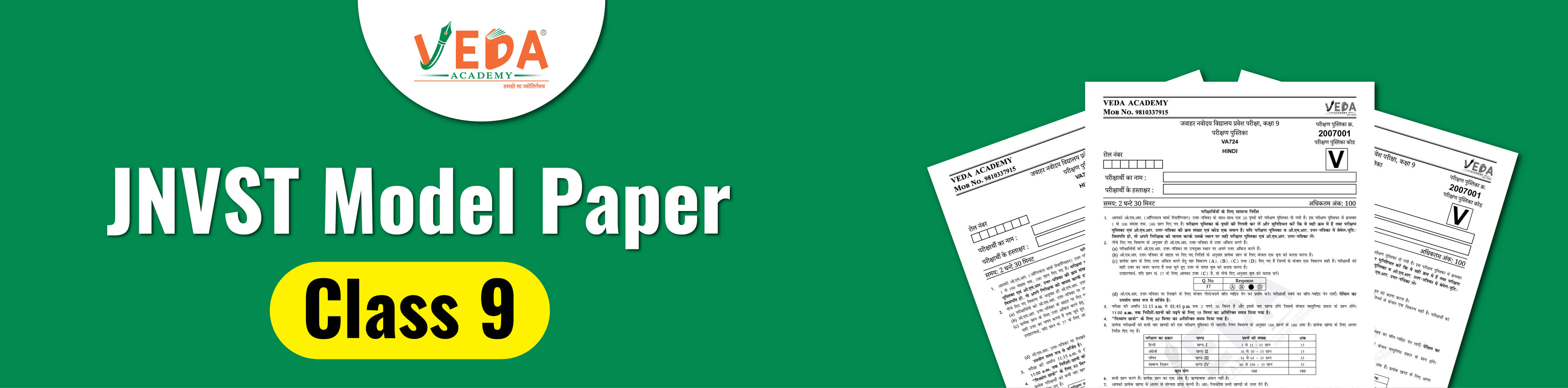 By solving these model papers on a regular basis. students can enhance their speed and build confidence before the actual exam. At Veda Academy, we provide well-structured Class 9 JNV model papers that are prepared by experienced teachers according to the latest syllabus. These model papers cover all important topics from Mathematics, Science, English, and Hindi, which make them an authentic resource for Jawahar Navodaya Vidyalaya exam preparation. Navodaya Vidyalaya Model Paper Class 9 plays an important role in your JNVST exam preparation. By solving JNV class 9 model papers daily, you can easily familiar with exam pattern, question and help to build confidence for exam. We offer completely free and downloadable model paper for Class 9 JNVST aspirants. These JNV model papers are especially designed by our experienced subject teachers. While designing the Navodaya Vidyalaya model papers Class 9, we follow latest syllabus and exam pattern, which makes your exam preparation easy. By downloading and solving these model papers, you can easily score well in your JNV exam by cracking the JNVST in your first attempt. We also provide class 9 JNV model papers in Hindi by following the latest exam pattern. We make learning accessible to everyone by providing quality study materials. Download the Class 9 Navodaya Vidyalaya model papers from the given links. There are many benefits of solving class 9 model papers such as understanding the exam pattern, familiar with question types and increasing the speed of solving questions. Understand the Latest Exam Pattern: Class 9 JNV model papers help students to understand the JNV Selection Test format, including how many number of questions, marking scheme, and time duration. It helps to reduce exam fear and confusion on the exam day. Improve Time Management Skills: By solving daily Class 9 model papers, students can easily manage time efficiently during the exam. Students will also learn how much time to spend on each section and avoid wasting time on difficult questions. Identify Strengths and Weak Areas: By attempting model papers, you can easily identify your strong and weak topics. This helps you find the improvement areas, where you need to focus. Enhance Speed and Accuracy: Class 9 JNV model papers also help you in increasing your speed and accuracy. It provides you real exam experience that helps you to enhance your problem solving skills. Attempting Class 9 JNV model papers helps you to score well in your Jawahar Navodaya Vidyalaya exam. Practice Exam-Level Questions: The JNV Class 9 model papers cover exam oriented and important questions from Mathematics, Science, English, and Hindi. This helps students to prepare well for JNV exam familiar with all types of questions asked in the actual Navodaya exam. Build Exam Confidence: Class 9 Navodaya Vidyalaya model papers play an important role in building confidence. It also helps to reduce the stress of the exam because it provides real exam experience. Veda Academy is a trusted name between students and parents for Navodaya Vidyalaya entrance exam preparation. Our study materials are prepared by experienced subject teachers who have deeply understanding of the JNV exam pattern and student needs. Our teachers follow the latest syllabus and exam information, provide free and quality model papers, and focus on quality & simple concepts. With easy to download model papers, and follow systematic approach, Veda Academy helps students to crack JNVST in their first attempt. Free Download Navodaya Vidyalaya Model Paper Class 9