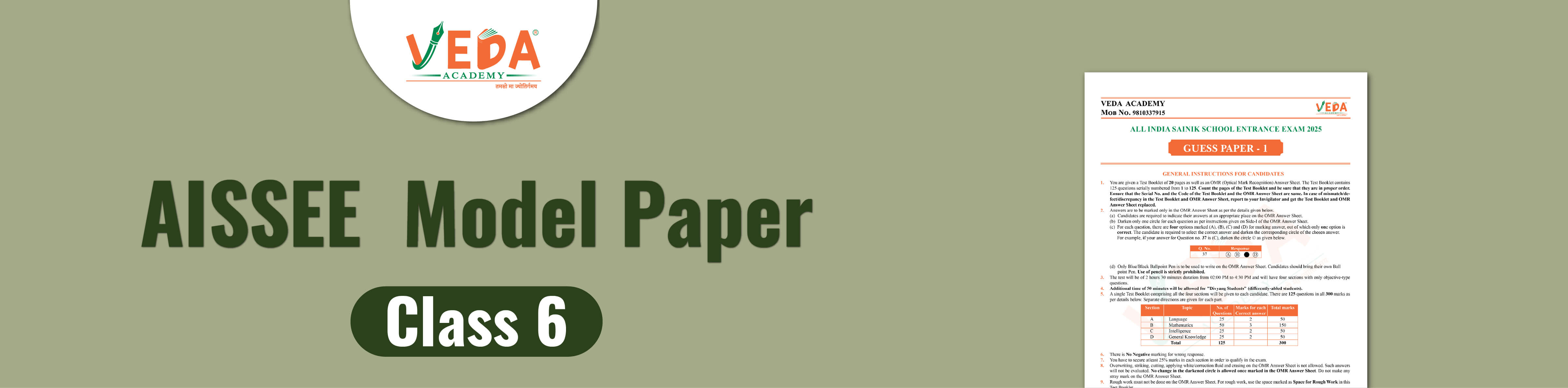 For students seeking an easy way to prepare for the Sainik School Class 6 entrance exam. Regularly practising the Sainik School Class 6 Model Paper is important. Model papers for Class 6 provided by Veda Academy are specially designed in accordance with the syllabus of Sainik School Class 6. Easy to understand and recite, with the right strategy and guidance, the students can score well in the Sainik School entrance exam for class 6, and that's what Veda Academy aims to achieve.
